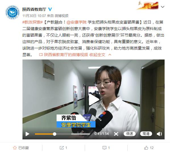 近期由英国365集团官网朱新鹏、梁如和付路静老师指导,食品科学与工程专业2018、2019级员工组成的4支参赛队参加“第二届健康安康营养富硒创新创意大赛”取得良好成绩,被陕西省教育厅微博推送,并被多家媒体报道。