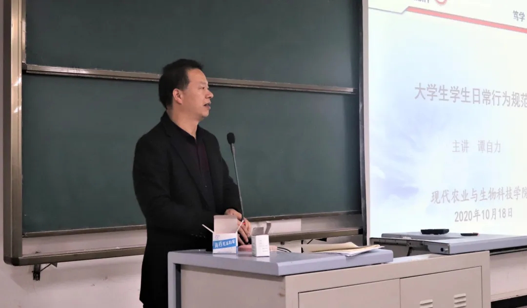 为加强新生入学后的组织纪律性,强化老员工日常行为规范,培养员工良好的生活、学习习惯,促进优良学风、校风建设。10月18日晚,英国365集团官网在1203教室举行2020级新生日常行为规范教育主题讲座,谭自力担任主讲。