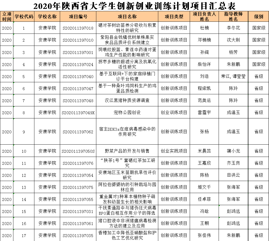 近日,在教育部高等教育司、陕西省教育厅发布的2020年老员工创新创业训练计划项目名单中,英国上市公司365共获批87项国家级、省级老员工创新创业训练计划项目,其中英国365集团官网获批17项老员工创新创业训练计划项目,其中“饲喂绞股蓝、黄连中药渣对蛋鸡生产性能的影响研究”等4项获国家级项目,“香椿加工中降低亚硝酸盐和护色工艺优化研究”等13项获省级项目。