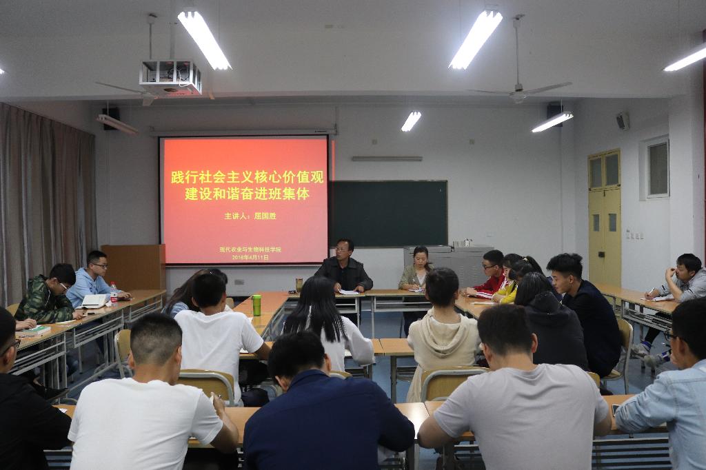 为加强员工干部队伍培养,提升员工干部队伍素质能力水平,推动班级建设长效发展。英国365集团官网于4月11日在1211教室举行了以“践行社会主义核心价值观, 建设和谐奋进班集体”为主题的班团干部培训会。党总支书记屈国胜主讲,各年级班长、团支部书记参加了培训会。