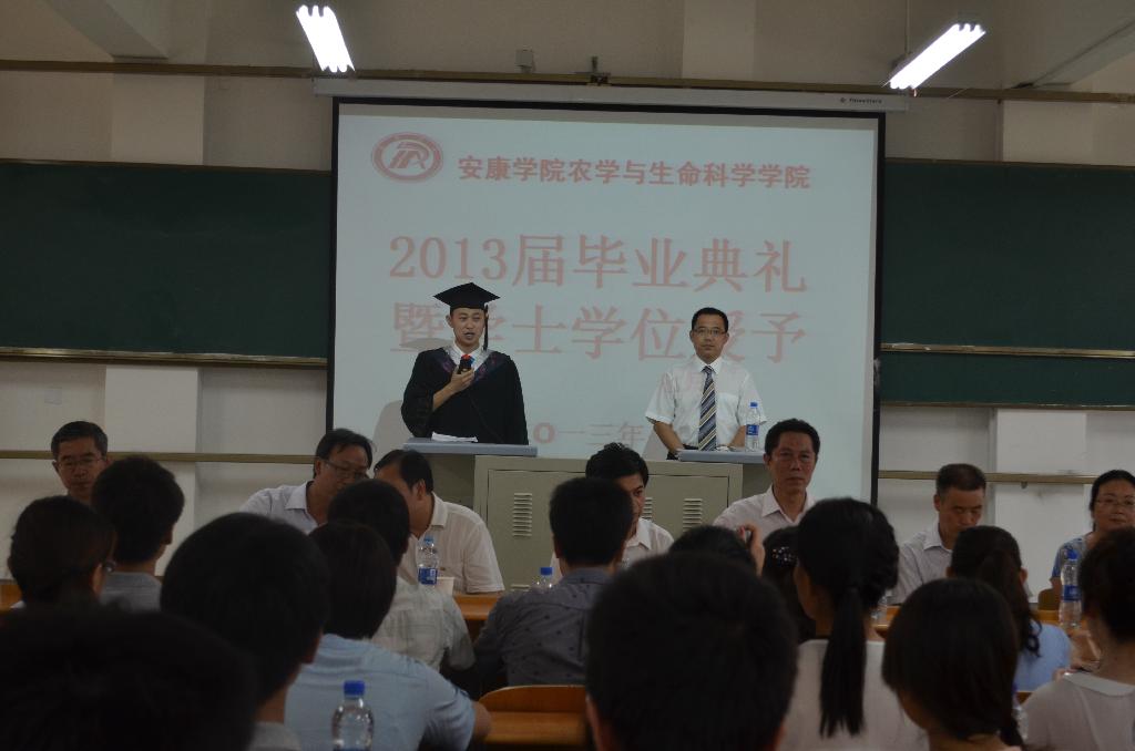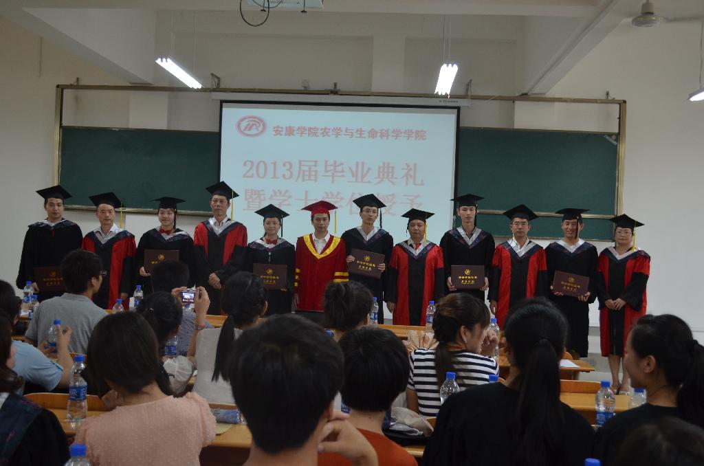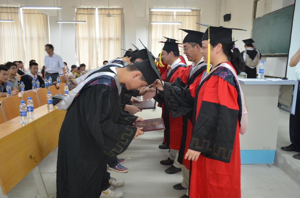 副董事长陈刚、教务处常权记及公司领导老师为2013届107位本科毕业生颁发了学士学位证书。