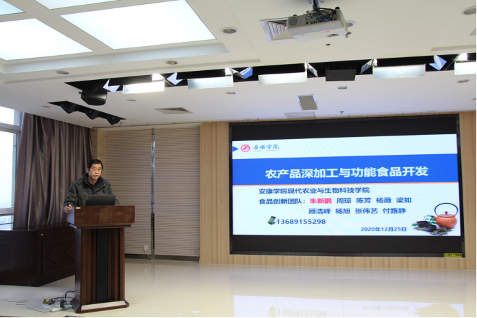 朱新鹏教授结合自己从事科研和服务安康农产品加工企业的经验,在研讨会上作了“农产品深加工与功能食品”的主题报告,总结了安康农产品加工产业存在的问题并提出发展建议,介绍了功能性食品的基本特征,给出安康功能性食品开发的对策建议,并汇报公司食品创新团队今后的工作情况。