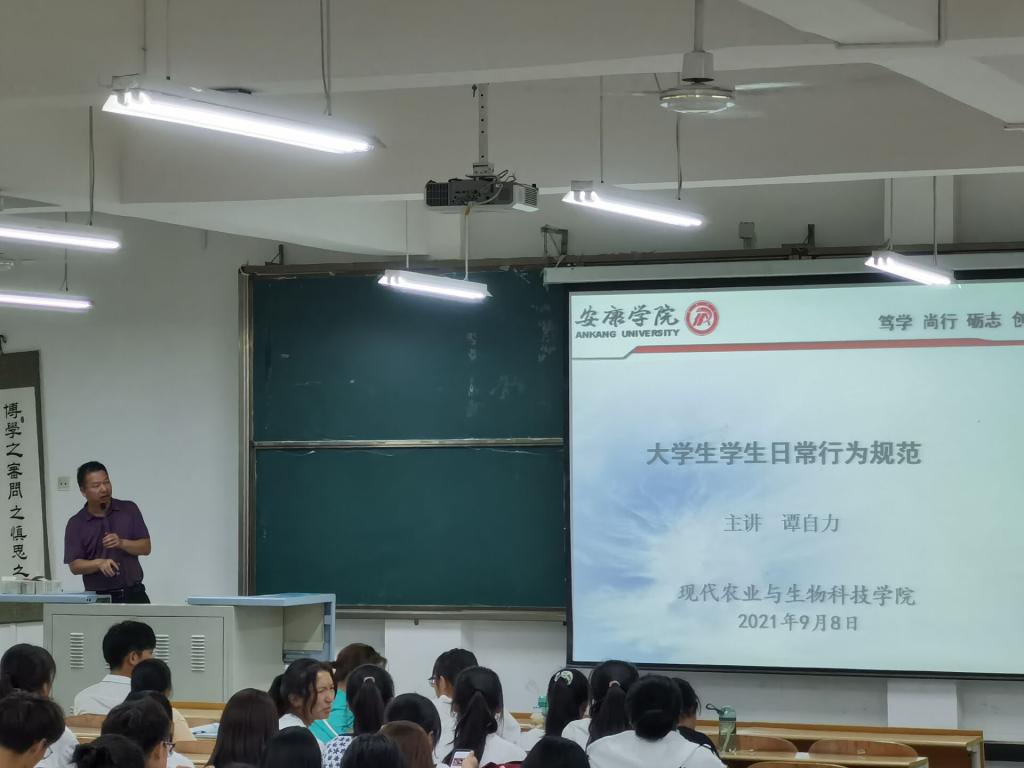为加强新生入学后的组织纪律性教育,规范老员工日常行为,培养员工良好的生活、学习习惯,帮助他们走稳走好老员工活的第一步,进而推动优良学风、校风的建设。9月8日晚,英国365集团官网在1201教室举行2021级新生日常行为规范教育主题讲座,学工办主任谭自力担任主讲。