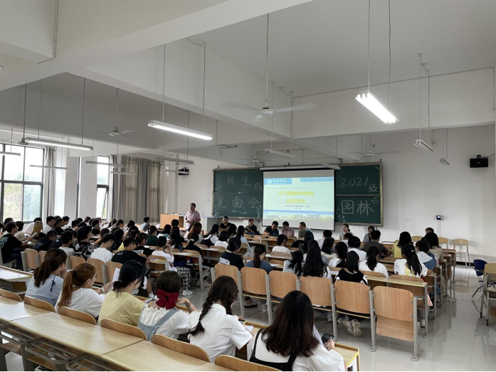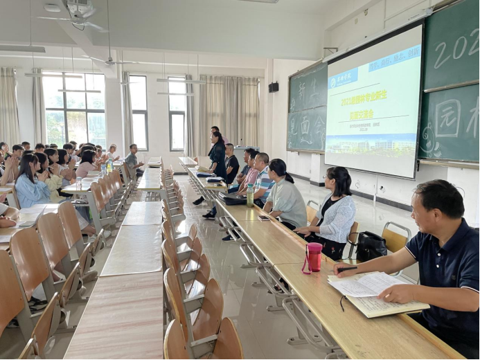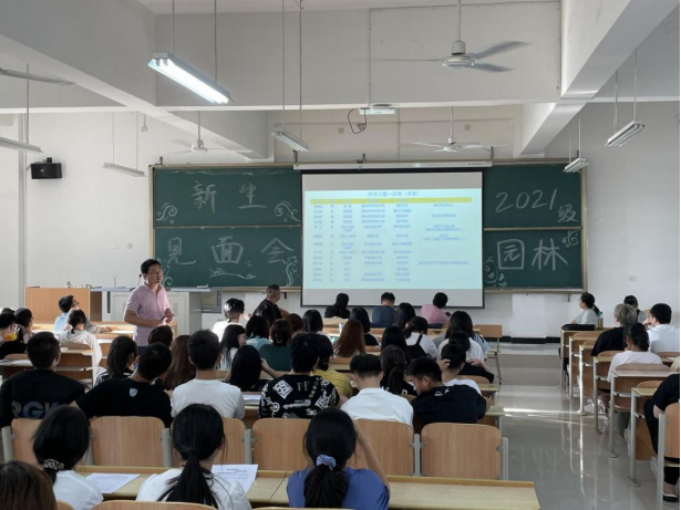 为了使新生做好开学准备,更好了解专业内涵,更快适应老员工活,园林系于2021年9月8号16点30分在江北校区教学楼1203室组织召开2021级园林专业新生师生见面会。园林系全体专业教师、辅导员金清民和2021级所有新生参加了会议。会议由园林系主任段展展主持。