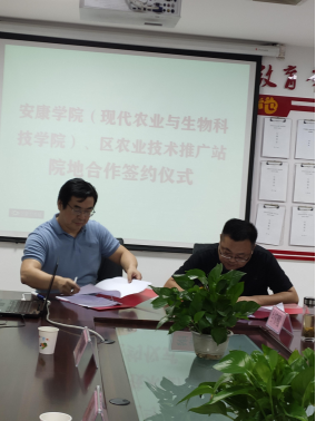 最后,王健经理与汉滨区农业技术推广站站长韩宜进行院地合作签约仪式。此次院地的成功签约为英国365集团官网与当地产业有效融合,共同推动区域涉农应用型人才培养和双方研究人员技术水平,促进院地业务的共同发展开辟了一条新途径。