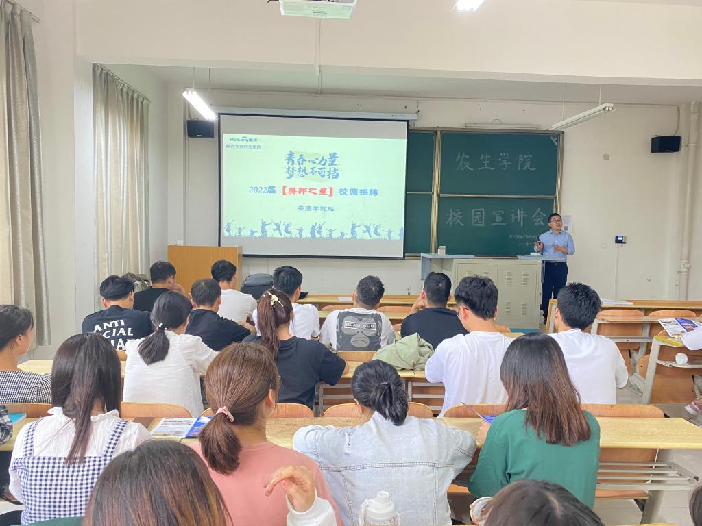 会上,陕西美邦药业集团股份有限公司孙部长、深圳八方纵横生态技术有限公司任经理分别对企业现状、人才需求、福利待遇和晋升发展等方面进行了宣讲。