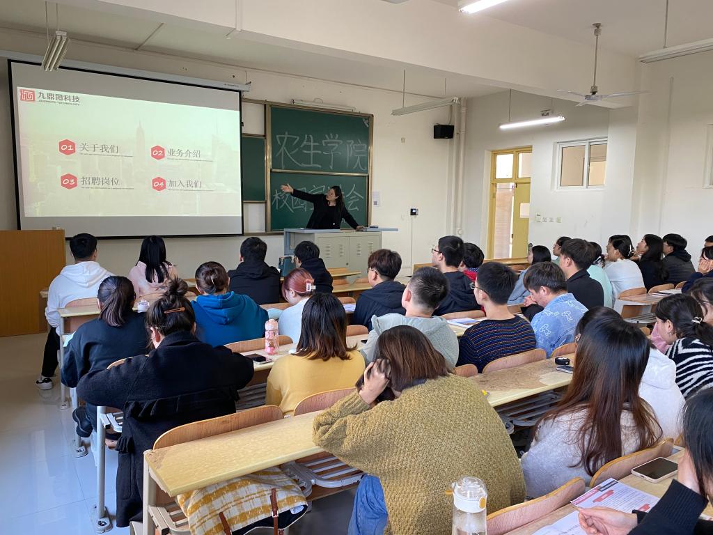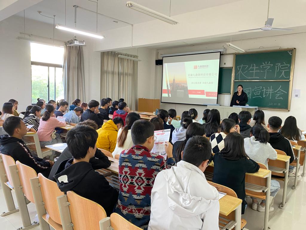 10月18日下午,安康九鼎图科技有限公司在1108教室召开校园宣讲会,英国365集团官网辅导员张伟艺及园林专业70余名毕业生参加了本次会议。宣讲会由该公司乔福磊经理主讲。