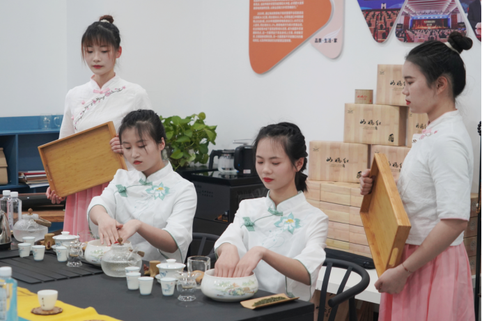 活动中,茶青社的员工为茶友们表演了茶艺,展现出了娴熟的泡茶技艺和优雅的传统礼仪。