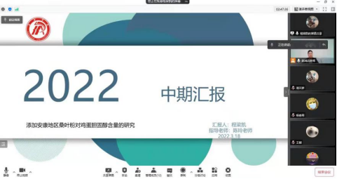 因疫情原因,本次中期考核采取线上和线下同时进行。首先同学们以PPT的形式逐一汇报了毕业论文进展程度、实验进展中所遇到的困难和问题及下一步规划安排,随后评审老师们针对汇报内容进行了提问和讨论,同时也指出课题中存在的一些问题,并对于进一步的研究工作给予了宝贵的意见及建议。