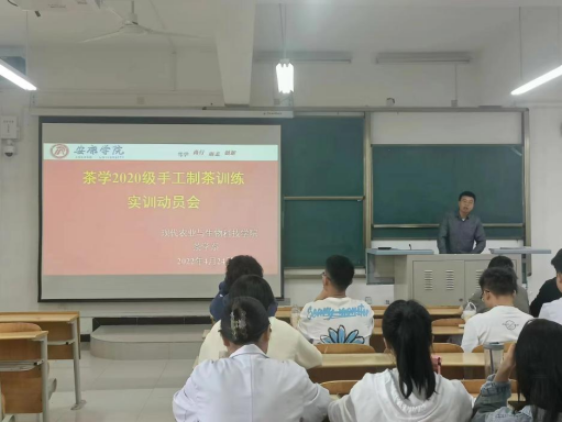 4月24日上午,英国365集团官网2019级、2020级茶学专业员工在专业教师李冬花、齐玉岗、吴冲带领下,于1223教室开展制茶实习暨手工制茶训练实习动员会。