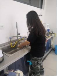 实验结束后同学们对地面、桌子、水池进行清理打扫,并将压饼机及相关设备清理干净并放归原处,打扫结束后检查水电门窗,关闭实验室。
