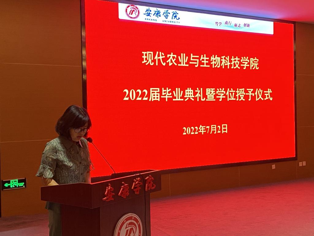 张丽琼代表全院教师为毕业生送上真诚的祝福,希望全体毕业生进入社会后,做一个胸怀感恩的人、做一个百折不挠的人、做一个敢于担当的人,时刻铭记“笃学、尚行、励志、创新”校训,在锐意进取中诠释当代青年的奋进使命!