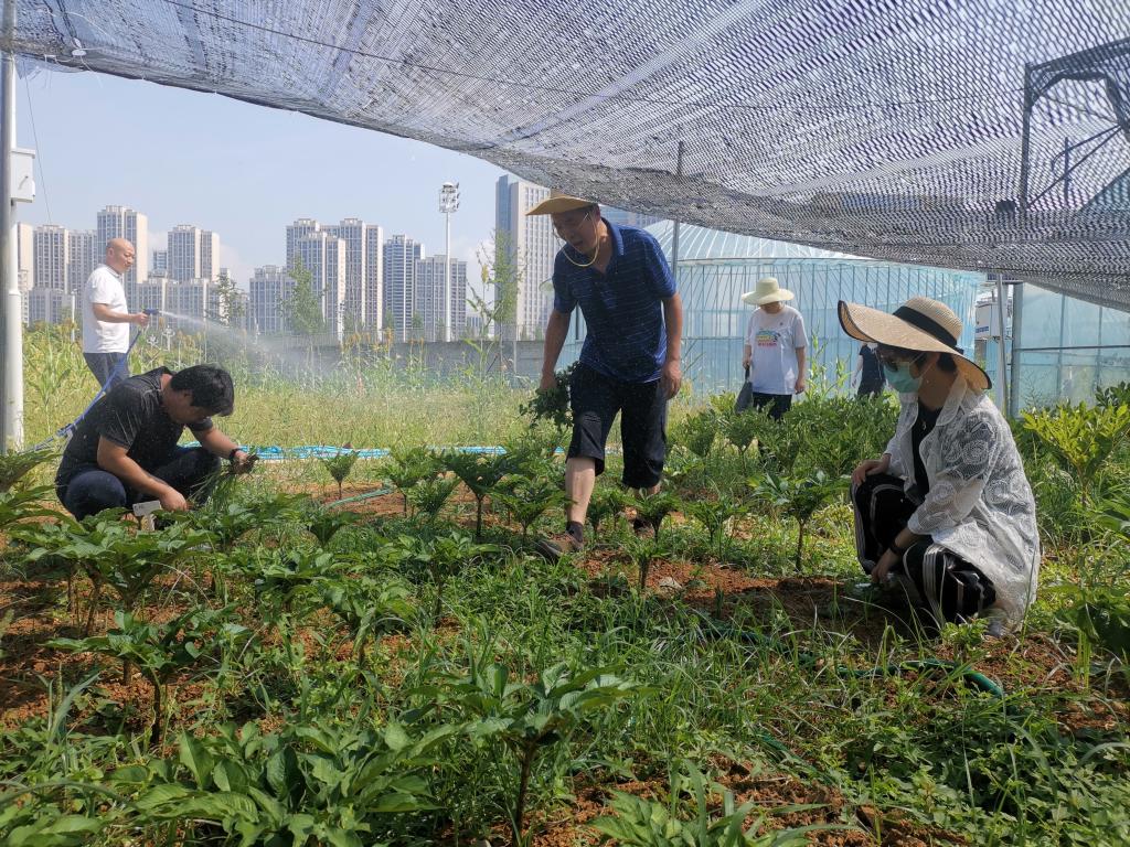 开班仪式结束后,全体党员、党务工作者、科级干部克服40度的高温酷暑,到校内实训基地进行了浇水、除草、作物采收等生产劳动。