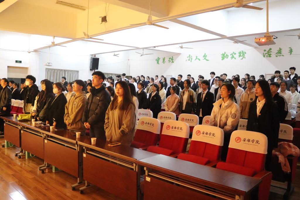 伴随着庄严的国歌,会议拉开了帷幕。与会师生共同观看了第十七届团总支员工分会的祝福视频,并通过视频回顾了过去一年取得的成绩,这一年大家踔厉奋发,勇毅前行,成绩斐然。