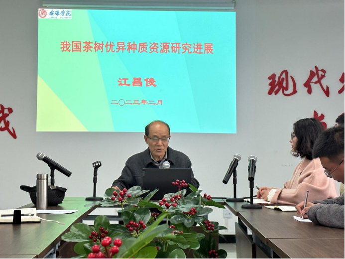 2023年2月28日,应公司茶学系和陕西省茶叶共建重点实验室邀请,安徽农业大学教授、博士生导师江昌俊教授,于公司江北校区产教融合大楼三农大讲堂开展了《我国茶树优异种质资源研究进展》的学术报告。公司茶学系全体师生参加了本次会议,会议由茶学系主任李冬花主持。