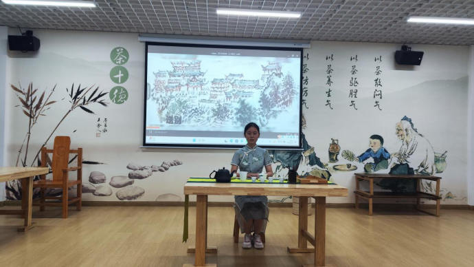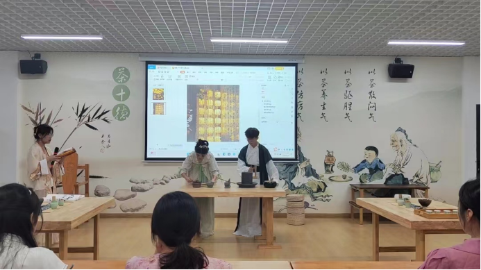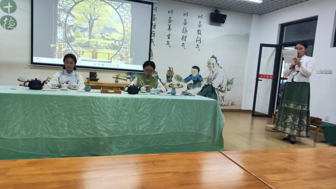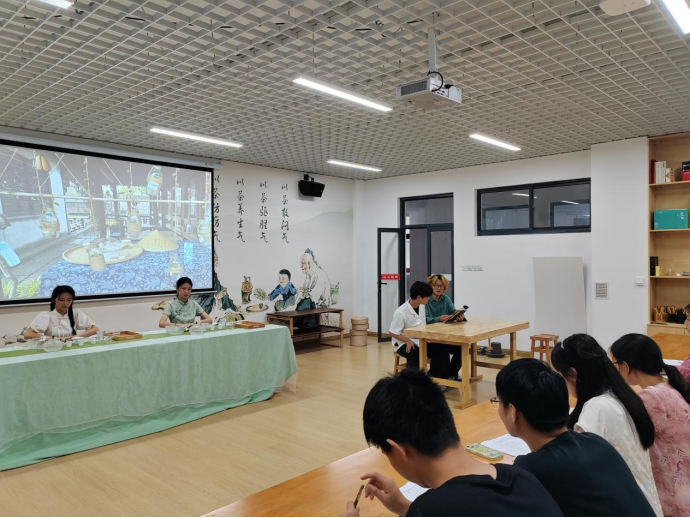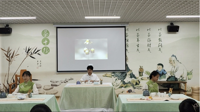2022年6月9日上午,在产教融合大楼4楼茶文化及茶艺实训室进行了实习作品展示,马瑛老师及有茶艺参赛经验的三名茶学大四员工担任本次考核的评委。本次共有8个作品进行展示,作品质量从创意、茶艺礼仪、茶席布置、茶艺技能和茶汤质量五个方面进行评判,重点内容为茶艺技能。