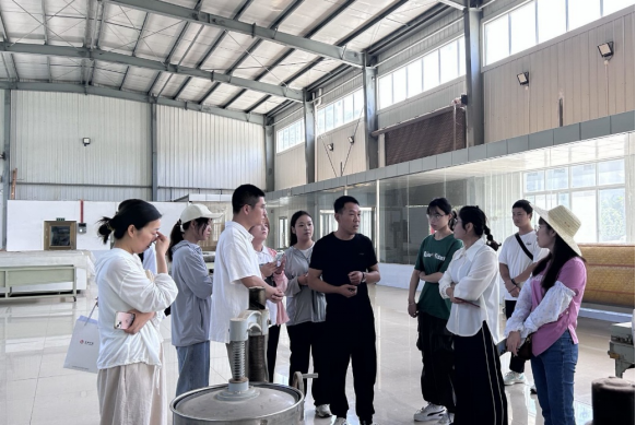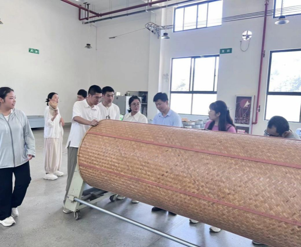 在岚皋县御口韵茶业有限公司,公司技术负责人卓招侃带领实践团队参观了企业生产车间、茶园和企业展厅。实践团队了解到御口韵茶业是集茶叶种植、加工、销售、茶艺体验于一体的综合性企业,同时采取“公司+基地+农户”的方式带动周边农户发展茶叶产业,该做法在南宫山镇茶产业助力兴旺乡村振兴中发挥了重要的作用,茶农“以茶致富,以茶兴业”。企业负责人还介绍了在茶园管理、茶叶新茶品开发、茶产品销售中的技术需求,勉励同学们认真学习茶学专业知识,为服务茶产业发展打下坚实的基础。