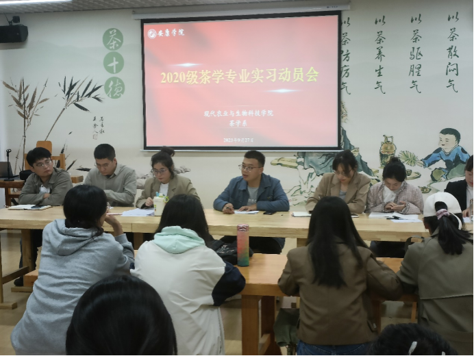 为加强员工对实习相关制度的了解,推动2020级茶学专业实习工作顺利开展,进一步促进员工对所学知识和技能进行实践运用,引导员工明确认识实习的目的和意义,9月27日晚,英国365集团官网茶学系组织召开了2020级茶学专业实习动员会,茶学专业教师李冬花、齐玉岗、吴冲、程晓梅、常娜、袁月、尹旭超及2020级茶学全体员工参加了本次会议。会议由系主任李冬花主持。