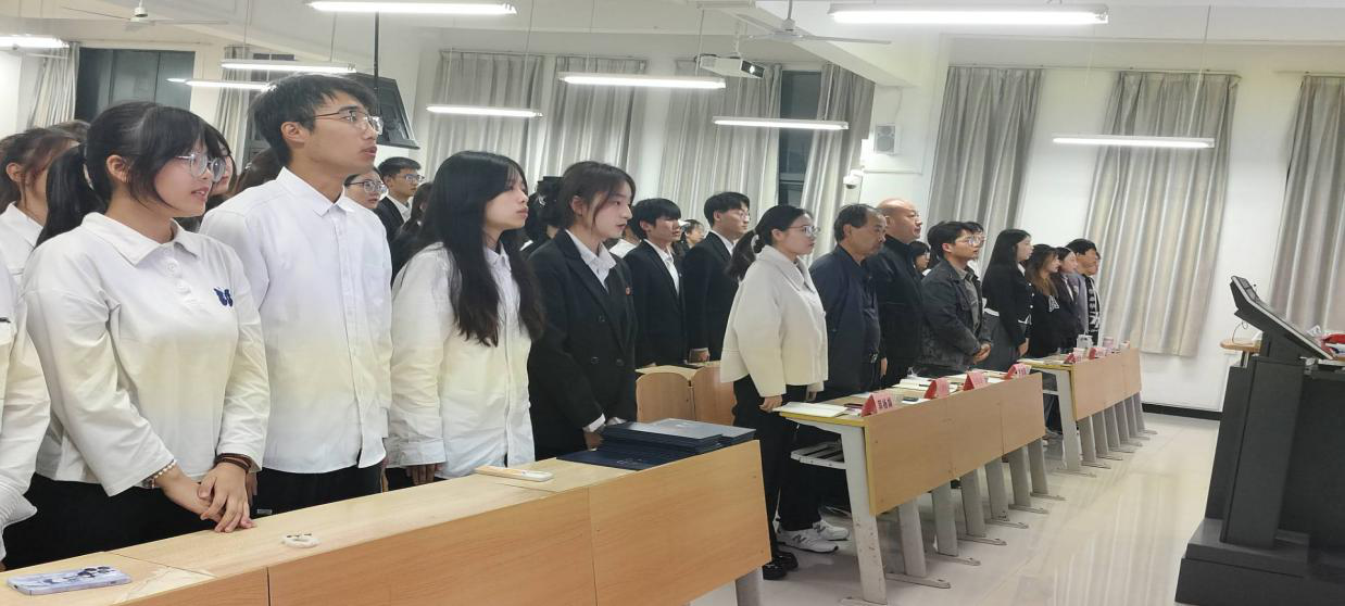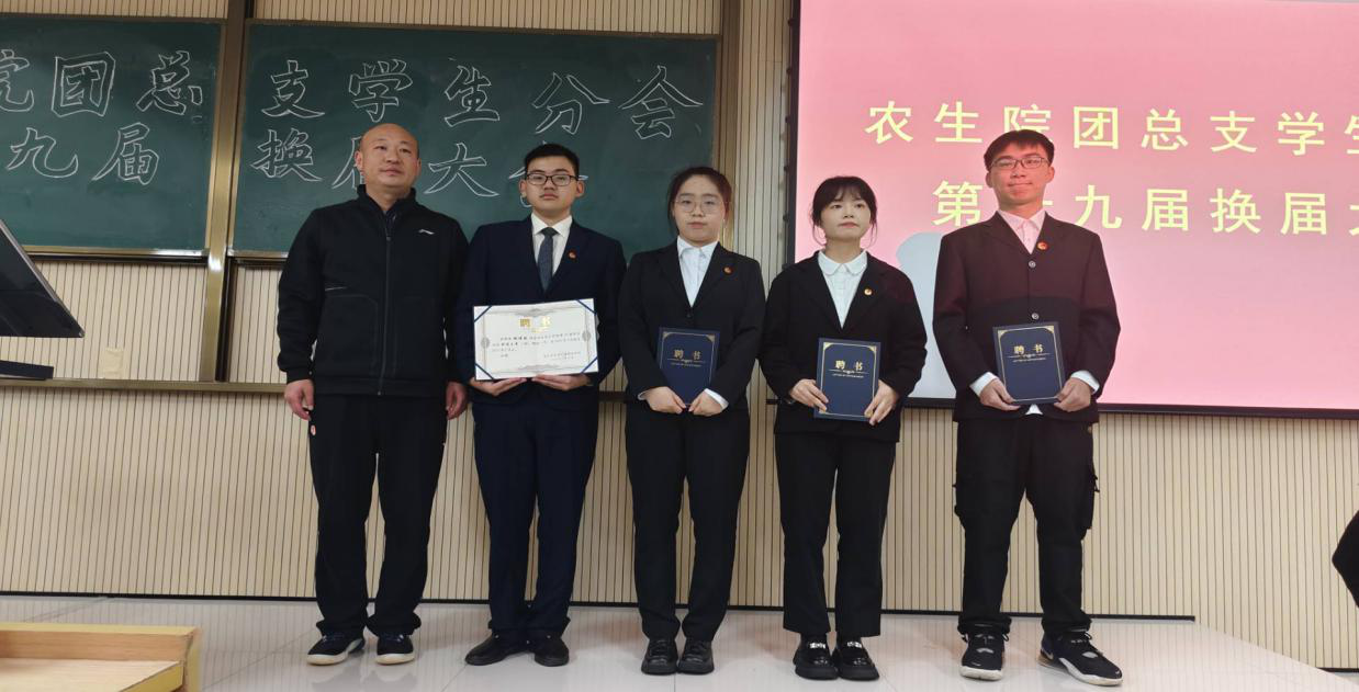 孙保本为第十八届团总支员工分会成员颁发聘书,与会学工老师为新一届团学干部颁发工作证,并合影留念。在参会师生的见证下,团总支、员工分会各部门进行庄严宣誓。