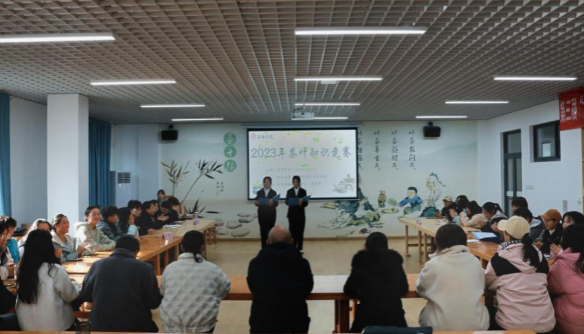 为了响应国家对涉农学科的大力支持,促进学科发展和茶文化的传承,提升茶学专业员工综合素养,丰富专业课程,将理论与实践相结合。公司茶学系于12月1日下午在江北校区产教融合大楼414茶文化与茶艺实训室成功举办2023年茶叶知识竞赛。农生公司党总支书记孙保本、茶学系主任李冬花、茶学专业老师齐玉岗、吴冲、马瑛、袁月、常娜、尹旭超以及茶学22级、23级员工和茶青社社员参与了此次活动。