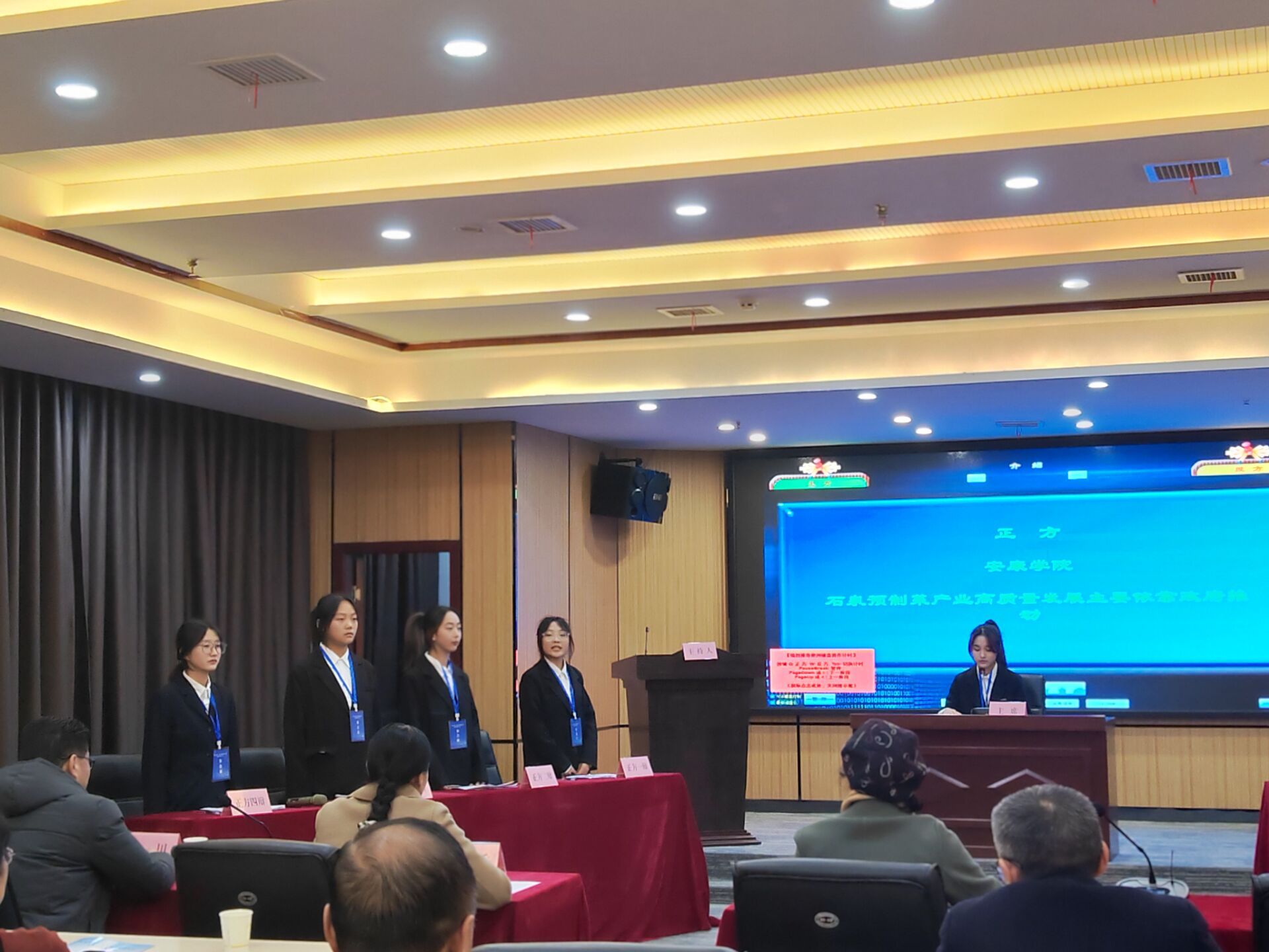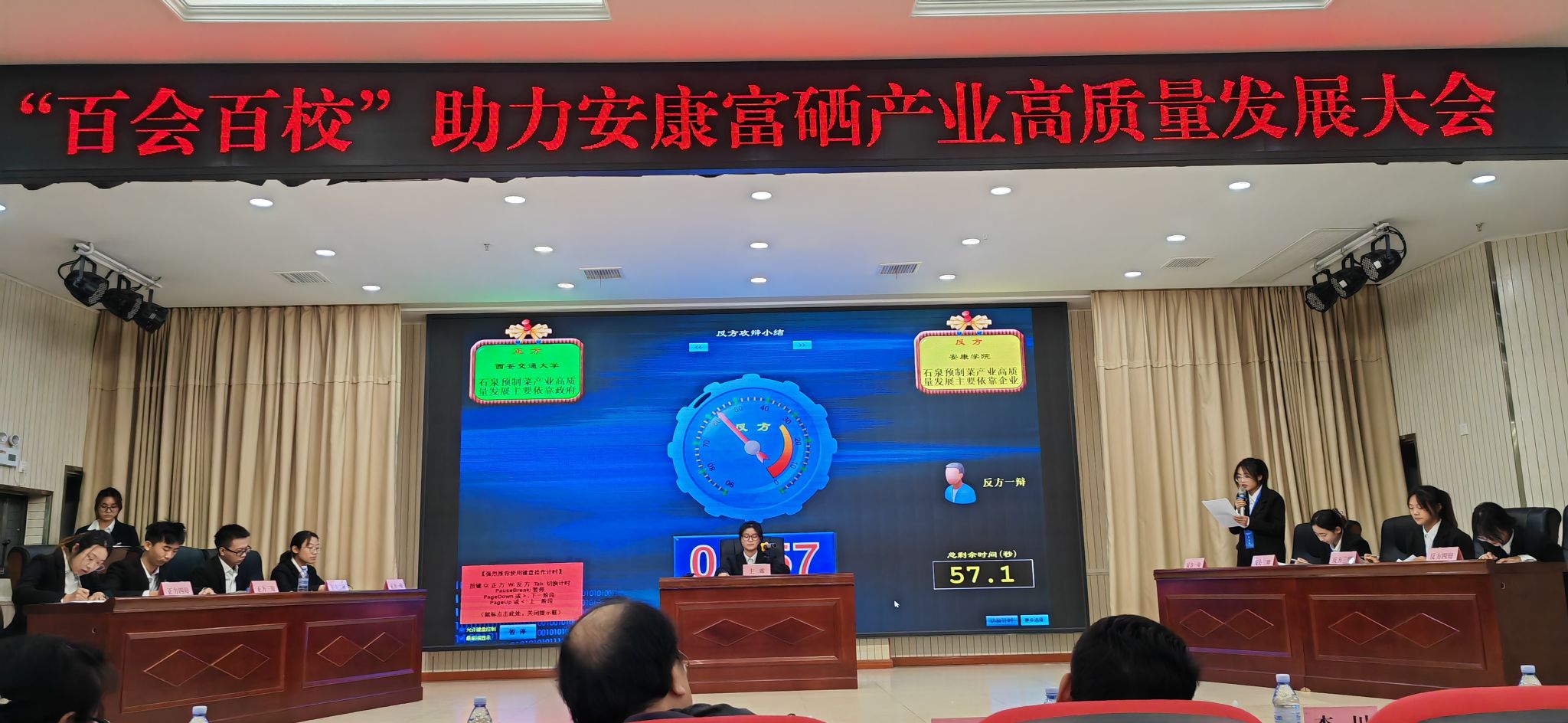 12月2日,公司代表队遇到更加强劲的西北大学代表队。双方就“石泉预制菜产业高质量发展主要依靠政府推动(公司正方)”“石泉预制菜产业高质量发展主要依靠企业科技创新(西北大学反方)”再次展开激烈辩论。公司代表队抓住当前预制菜出现的相当一部分消费者不认可、产业发展遇到投资等问题,以及市场需要规范等情况,据理力争,又一次赢得评委的认可而胜出,成功晋级进入决赛。