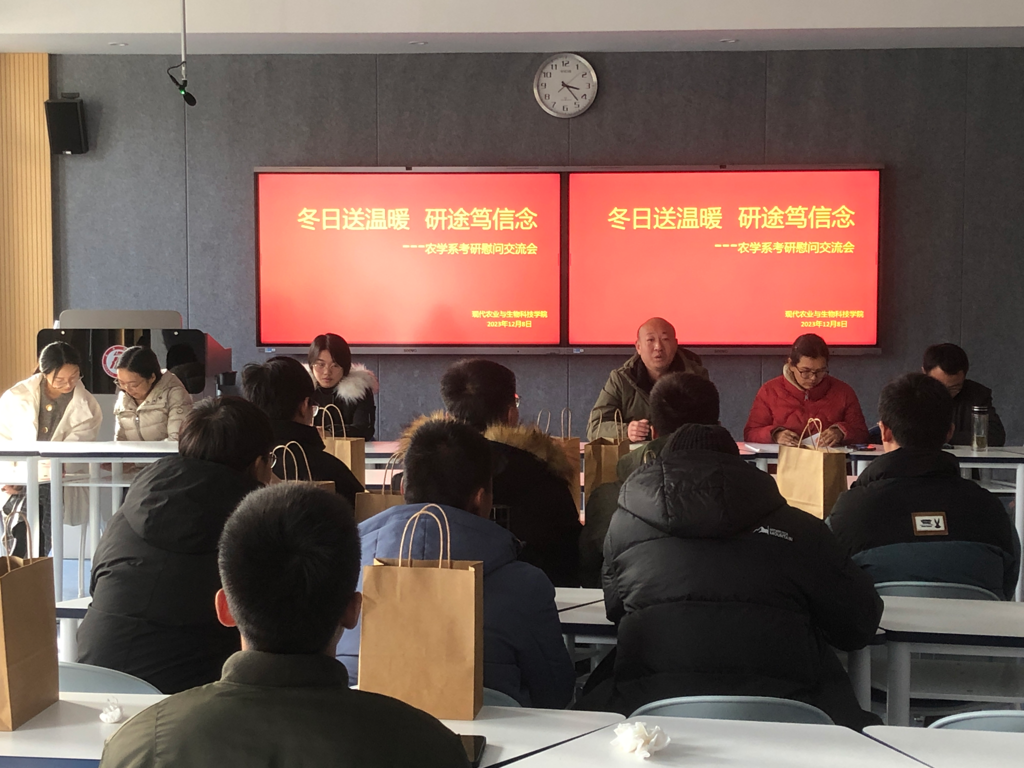 交流会上,各位老师对考研学子一直以来的坚持、坚守、执着的优良品质给与高度肯定,纷纷从考前的心态调整、应试技巧、最后的复习冲刺等方面进行了深入交流,鼓励同学们一定要坚定信心,绝不放弃,以饱满的精神和斗志迎接挑战,祝愿同学们成功上岸。