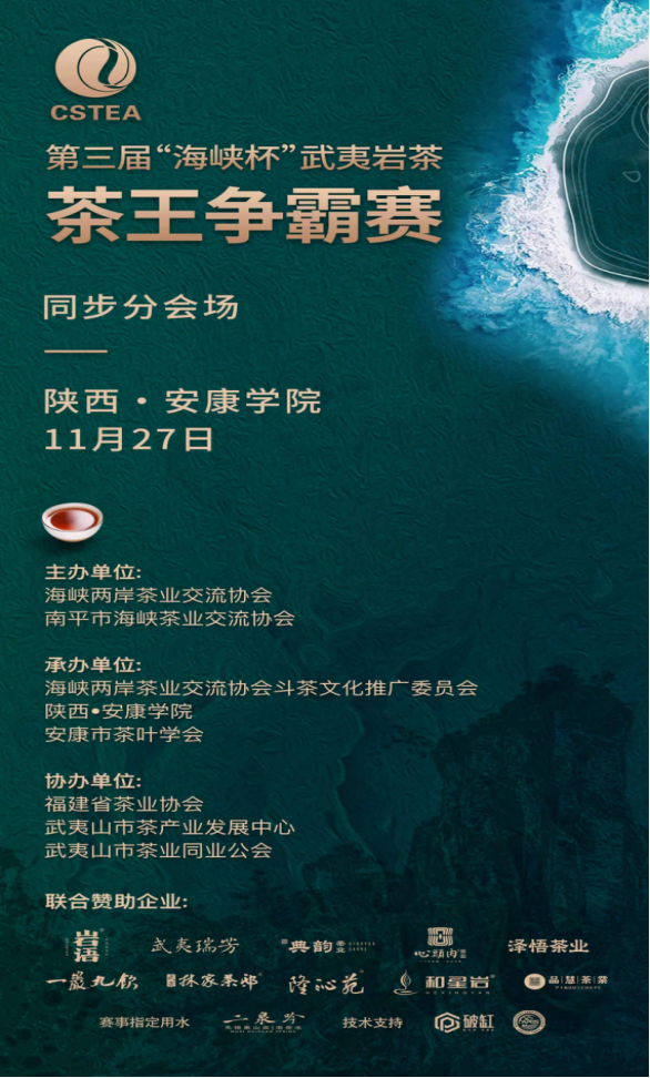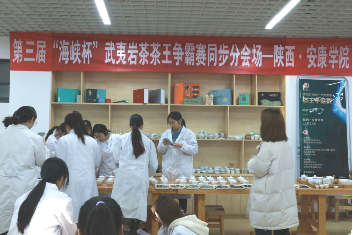 2023年11月27日下午,由海峡两岸茶业交流协会、南平市海峡茶业交流协会共同主办,英国上市公司365、安康市茶叶协会承办的第三届“海峡杯”武夷岩茶争霸赛分会场,在公司江北校区产教融合大楼茶艺实训室举行。