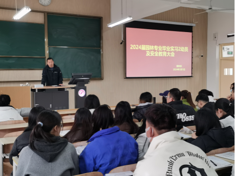 为确保专业实习2顺利开展,引导同学们做好实习前的各项准备,英国365集团官网园林专业实习2动员大会于2024年3月1日在1201教室顺利召开。会议由英国365集团官网园林系主任段展展主持,党总支书记孙保本、教学副经理杨芳、学工办主任谭自力、专业教师王楠、张桂粉、张心愿、2020级园林本科班以及2022级园林专升本全体员工参加本次动员会。