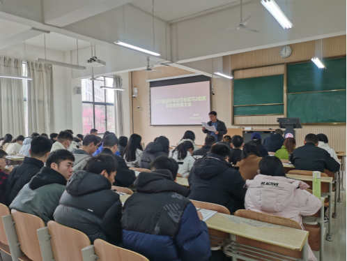 随后,谭自力对实习要求、实习与就业的关系进行了详细介绍,并强调专业实习是实践教学环节的重要组成部分,要求同学们从思想上高度重视毕业实习,认真把握实践实习机会,为高质量就业打下坚实基础。