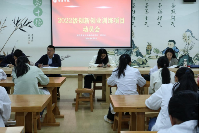 为切实将创新创业教育融入人才培养全过程,培养员工创新思维、创新意识和勇于探索的精神,4月9日下午于江北校区茶艺室召开2024年老员工创新创业训练项目申报动员会,会议由茶学系主任李冬花主持,茶学系教师齐玉岗、吴冲、袁月、常娜、尹旭超以及2022级全体员工参加。