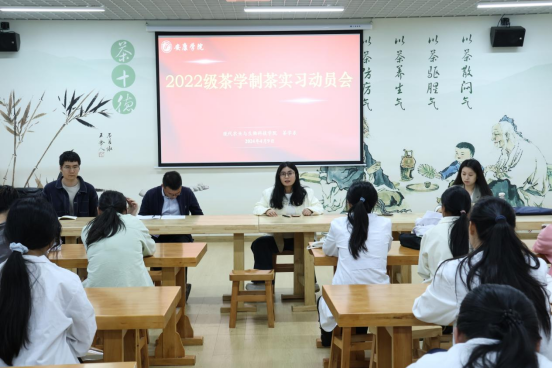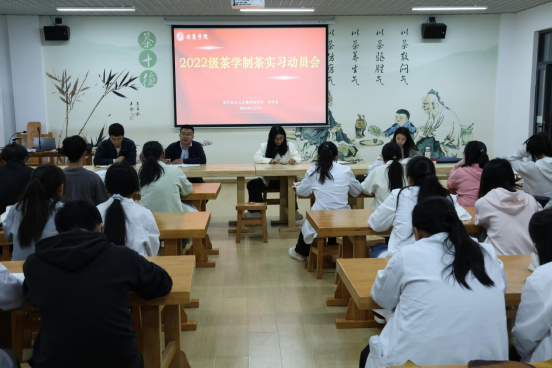 4月9日下午,在产教融合大楼茶艺室召开了茶学2022级制茶实习动员会,旨在进一步提高员工的实践技能,为即将开始的制茶实习做好准备。会议由茶学系主任李冬花主持,茶学系教师齐玉岗、吴冲、袁月、常娜及2022级茶学专业全体员工参会。