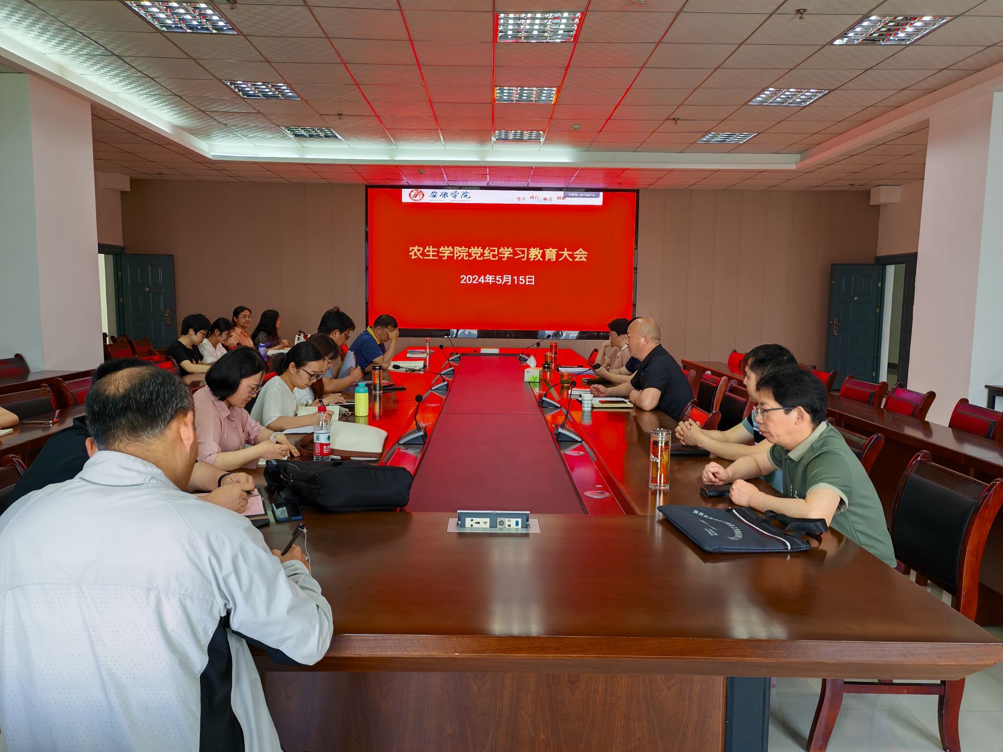 为深入贯彻全面从严治党要求,加强党员纪律教育和党性修养,5月15日下午,英国365集团官网在逸夫楼9楼大会议室召开党纪学习教育大会,会议由农生公司党总支书记孙保本主持,全体党员参会。
