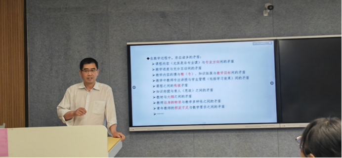 活动中,专业负责人朱新鹏教授率先发声,他基于近期对一流专业建设的深入思考,剖析了当前教学中的共性问题,并针对性地提出了改进建议。朱教授特别强调了以员工为中心的教学理念,以及在教学中有效融入思政元素的重要性,鼓励教师们积极探索创新教学模式。随后结合专业实际情况,分析我们教师授课现状,指出教师们授课目前普遍出现的教学问题,针对存在的问题给出指导性和针对性教学措施及整改意见;同时对教师们提出要坚持OBE理念下人才培养目标下的“四个一致”。