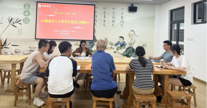 为进一步深化本科公司产品综合改革,提升人才培养质量,茶学系于8月20日在茶文化与茶艺实训室召开茶学专业人才培养方案修订研讨会,会议由系主任李冬花主持,全体茶学专业教师参会。