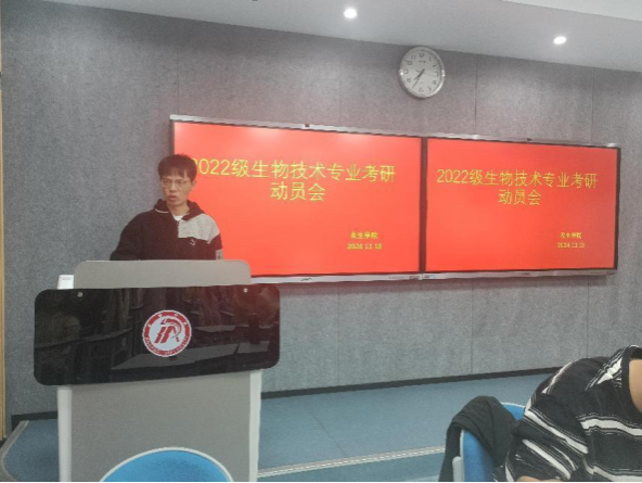 2024年11月18日晚上,在江北校区1217教室,生物系召开了2022级生物技术考研动员大会。本次会议由陈晓帅博士主持,周天骄、赵鸿远、许连光和陈苏维等几位老师参加了会议。