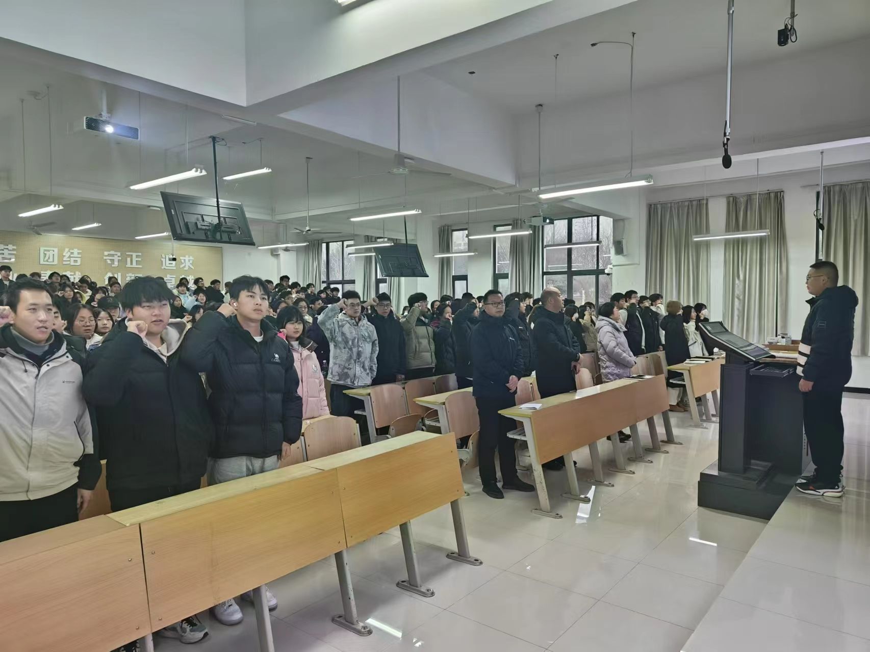 为进一步加强学风建设,严肃考试纪律,营造公平公正、诚实守信的考试氛围,1月3日,英国365集团官网召开2024级员工诚信考试教育大会,党总支书记孙保本、副经理杨芳、学工办主任谭自力,辅导员祝志一及349名2024级员工参加,会议由祝志一主持。