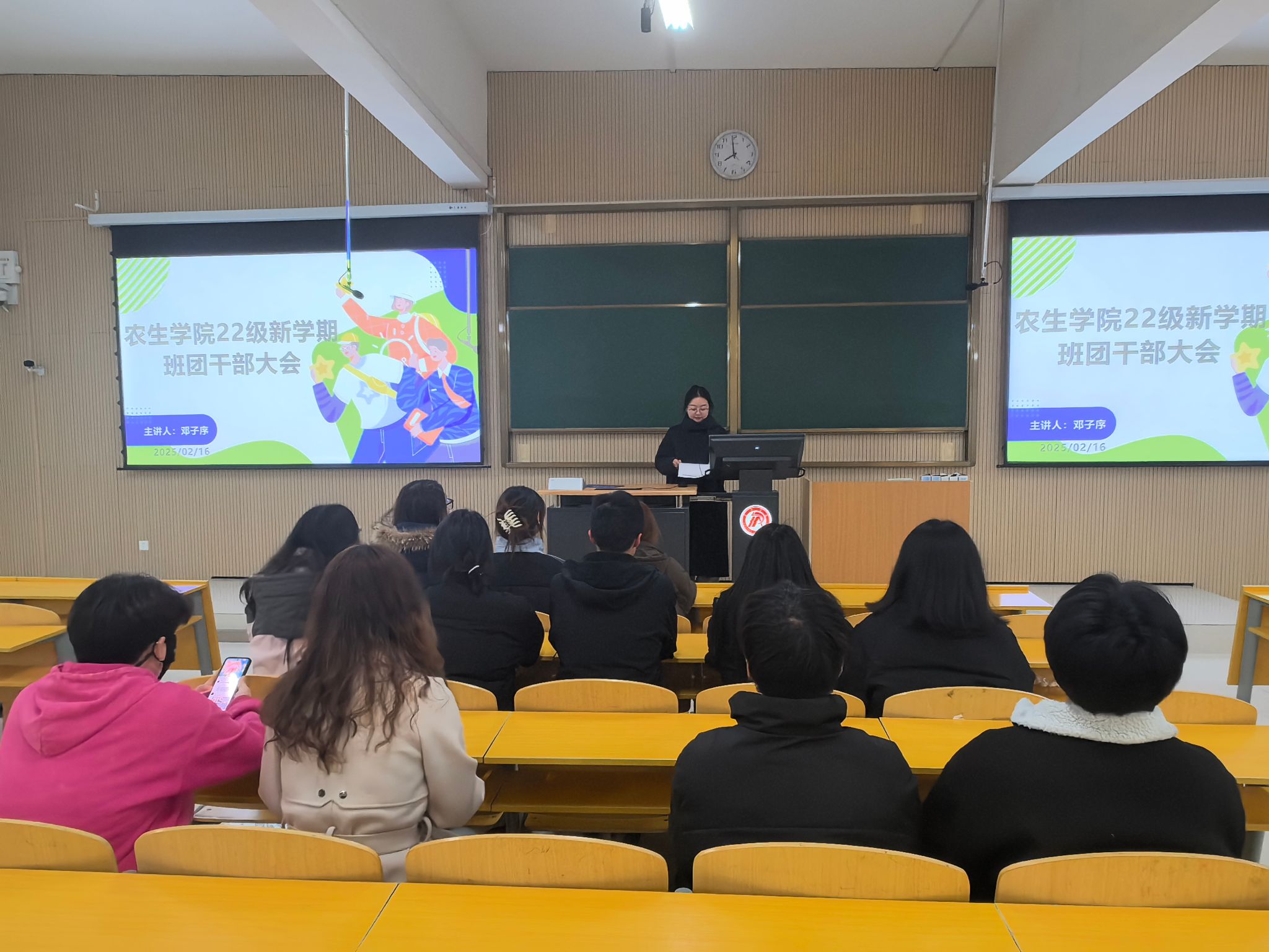 筑牢安全防线,守护平安校园。在安全教育环节,重点强调了实验室安全、宿舍安全以及校园内外的人身安全,并结合真实案例,提醒同学们注意防范电信诈骗、火灾隐患等问题。针对春季传染病高发期,辅导员还详细讲解了预防措施,提醒同学们养成良好的卫生习惯,增强自我保护意识。