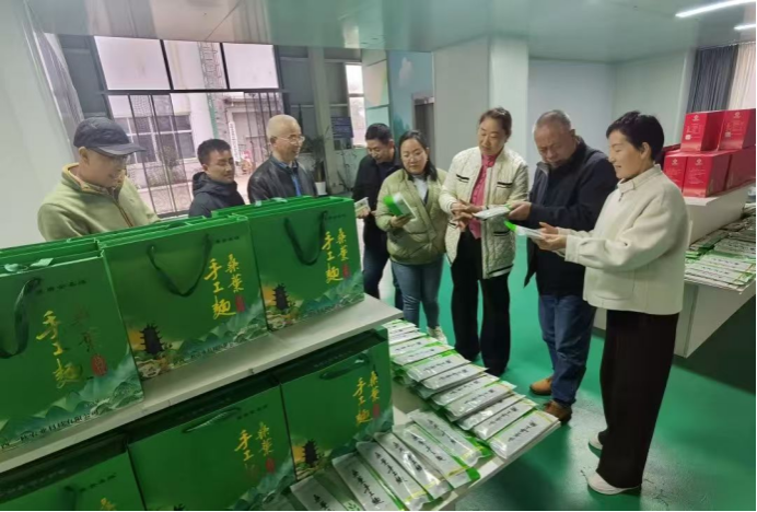 在陕西一秋农业科技有限公司,大家参观了食品生产车间,考察了桑叶食品开发利用及市场销售情况。