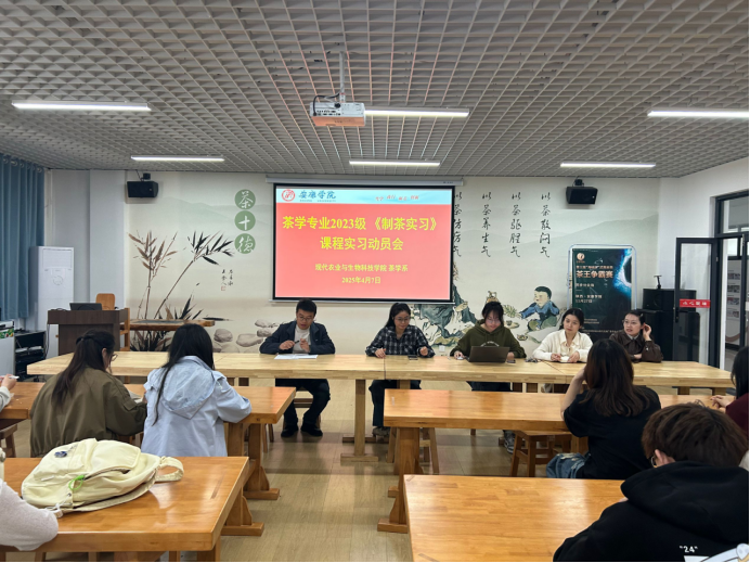 为深化产教融合,提升员工实践能力,4月7日茶学系在茶文化与茶艺室召开《制茶实习》课程动员会。茶学系主任李冬花、茶学老师齐玉岗、吴冲、尹旭超、袁月、常娜、程晓梅及2023级茶学员工参加此次动员会。