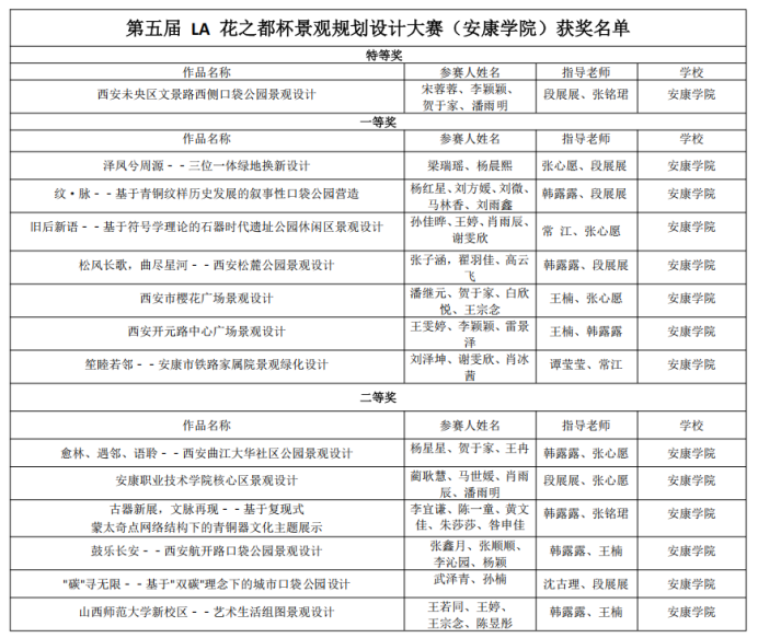附表:第五届LA花之都杯景观规划设计大赛(英国上市公司365)获奖名单
