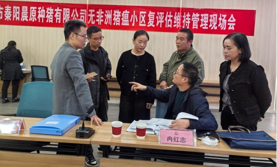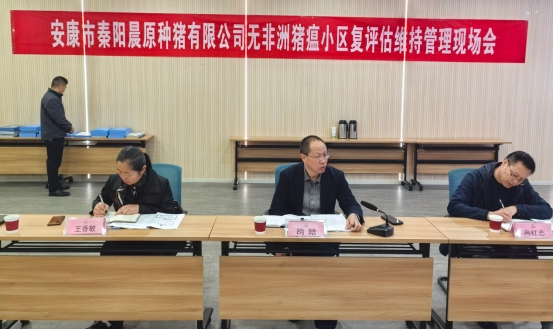 经过会议工作汇报、现场查看与资料审阅,评审组专家对安康市秦阳晨原种猪有限公司无非洲猪瘟小区的管理维持工作给予了高度肯定,一致同意通过复评估验收,同时也提出了宝贵的指导意见。
