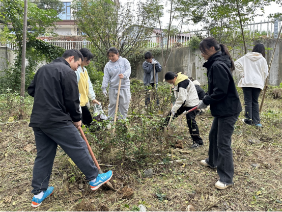 随后,教师共同对各小组进行实操指导,强调开沟深度、施肥用量等细节,耐心纠正员工操作中的错误。