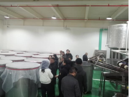 上午,团队首先来到旬阳市高新区吕河工业园区,依次走访了旬汉食品有限公司(烘焙食品生产线)、星牧食品加工有限公司(浆水菜生产线)、天正酿造有限公司(拐枣醋生产线)以及陕西尚都富硒辣椒农业发展有限公司(辣椒酱制品生产线),深入了解各企业的生产流程与工艺特点;随后,在城关镇龙头村,团队参观了旬阳市金茂生态农业有限公司,现场观摩了陕西省非物质文化遗产“拐枣酒制作技艺”第三代传承人演示的传统陶坛发酵工艺,企业将古法酿造与现代科技相结合,实现对发酵过程的精准调控,有力推动了拐枣酒产业的现代化升级。