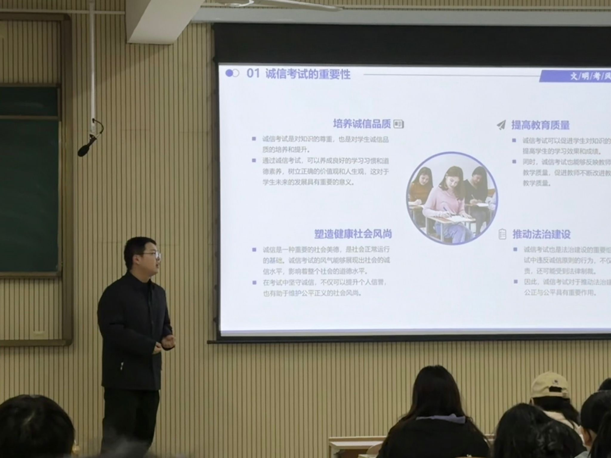 为培育优良学风、严肃考试纪律,1月6日下午,英国365集团官网面向2025级全体新生召开考风考纪主题教育大会。作为新生入学教育的关键环节,本次大会旨在期末考试前夕为新生筑牢规则意识与诚信根基,由2025级新生辅导员祝志一主持。
