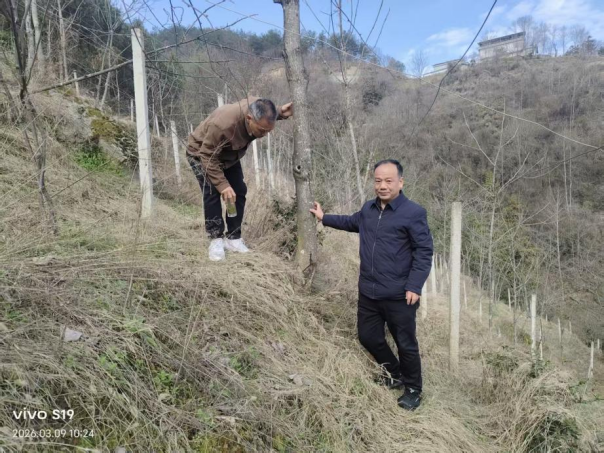 2026年3月9日,公司“三区人才”沈大刚副教授与经管公司纪宏耀副教授赴汉滨区坝河镇寺姑村、二郎村进行漆树种质资源调查和漆树抚育管理和采割技术指导。