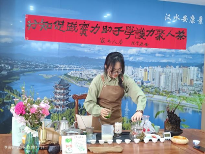活动以一曲激昂的《学习雷锋好榜样》大合唱拉开序幕,歌声嘹亮,将奉献精神融入缕缕茶香。随后,实践环节精彩上演。茶青社学子充分发挥专业优势,全国老员工茶艺大赛获奖者杨梦圆带来创意调饮《莓涧春山》,杨思彤展示传统茶艺《鸟迹书茶・秦岭茶语》,传统韵味与现代创新交相辉映。茶企代表曹海花、胡小娇现场演示生活茶艺,边冲泡边讲解茶叶知识要点,将课堂理论精准对接销售一线的冲泡实战场景,让同学们深刻领悟到如何以专业技艺赋能终端营销,提升了服务顾客的实操能力。师生们走进门店一线,近距离了解安康富硒茶品质和品牌文化,在沉浸式体验中完成了从理论到实践的跨越。
