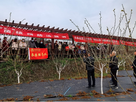 在果桑园管理和病虫害防治技术培训现场,彭云武研究员为一百余农户讲解了果桑园病害防治和桑果采摘之后的桑园管理技术,强调采摘之后要“三及时”,一是要及时施肥,二是要及时疏芽,三是要及时修剪,保障来年桑树长势和桑园产量。培训现场为果农发放了桑园管理肥料、病虫害防治药品和技术资料。活动当天,实验室一行还为现场嘉宾介绍了实验室丝胶蛋白护肤品、彩色茧蚕品种育种等技术研发成果。