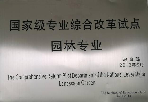 2013年6月,根据教育部下发的《关于公布“本科教学工程”地方高校第一批本科专业综合改革试点通知》(教高司函[2013]56号)公司园林专业入选首批教育部“国家级本科专业综合改革试点专业”。