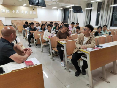 党总支书记孙保本与支部党员交流学习心得