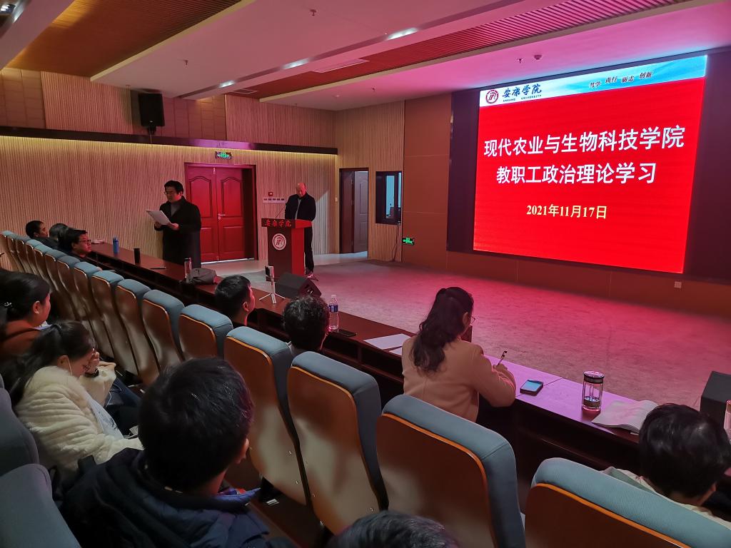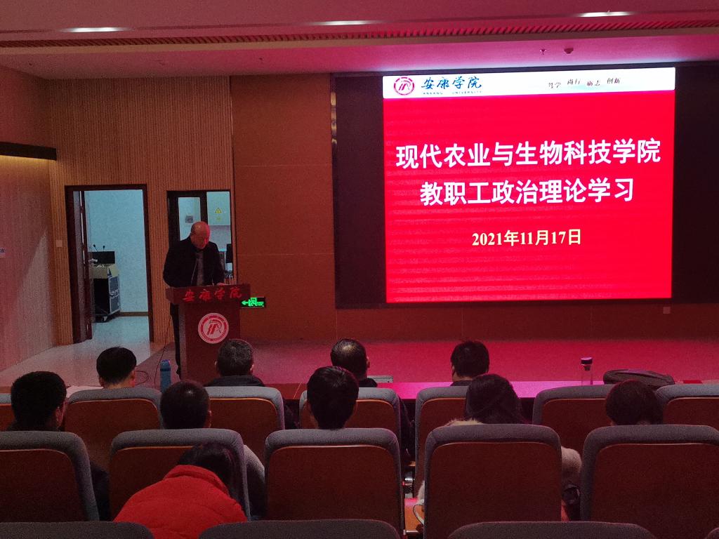 11月17日下午,英国365集团官网在江北图书馆报告厅召开十九届六中全会精神学习会,全院教职员工参加会议。